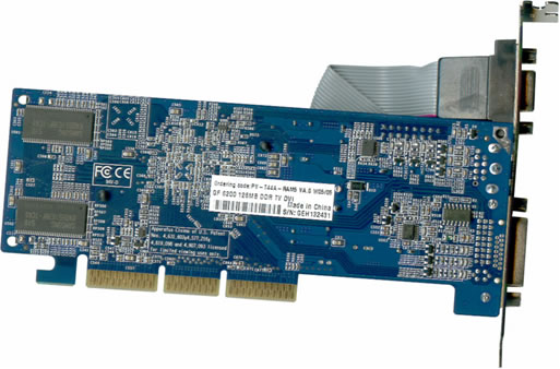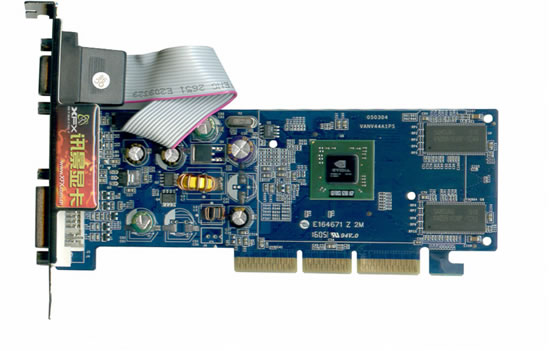 显卡核心频率为350MHz,显存频率为500MHz。采用了名牌原厂TSOP封装的4ns显存颗粒,正好满足频率要求。颗粒规格为16M×16bit,正反共4颗,显存总容量为128MB。