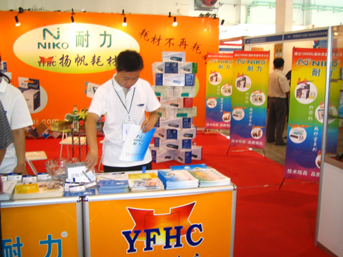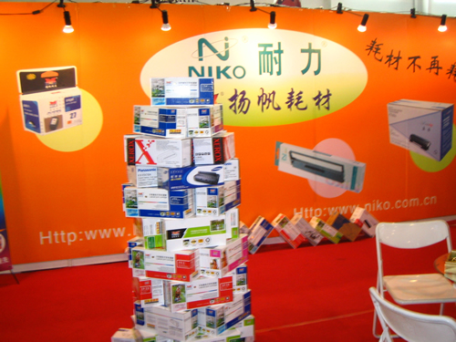 扬帆耗材在此次展会上拥有两个特展位,总面积为参展商之首。展出产品包括墨盒、硒鼓、色带、打印介质、存储介质等全系列耗材产品。齐全的产品种类引来了众多耗材经销商和同行观摩。据了解,扬帆耗材的销量不仅在国内市场占有率遥遥领先,在国际市场也成就非凡,耐力系列产品行销欧洲、北美、拉美等20多个国家,喷墨盒产销量连续几年稳居全球前列。
