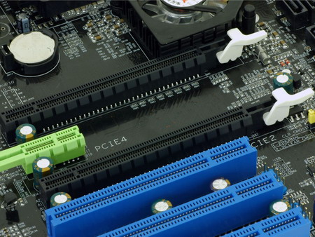 C.NF4X7-DS Pro采用免跳线SLI互联方式,并采用了与七彩虹C.RD480-MVP Crossfire主板相同的单双卡切换方式,主板提供了一块PCB板,当用户使用单卡的时候,将这块PCB板插在旁边的副PCI-E x16插槽上,主板即可以标准单卡PCI-E x16方式运行,当使用双显示卡后,只要两条PCI-E x16插槽上,都有显示卡,主板将自动将工作模式切换为SLI x8+x8工作模式。这样的设计,免去了用户跳线的麻烦,切换模式,也比横向切换卡更方便,并且无需特殊设计切换电路,大大控制了成本。七彩虹这样的设计,非常人性化。