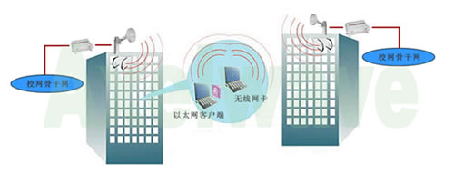 方案二,采用室外覆盖方式,选用室外无线AP,通过天线聚集无线信号,使无线覆盖范围更大、更远,穿透能力更强。设备与天线安置于楼宇顶部或底部,以无线信号向下或向上整体覆盖楼宇。在项目具体实施中,我们选用Axelwave 高校专用AX9400EDU系列室外无线AP,配合XA212全向天线或XA-124定向天线,完成无线网络覆盖要求。