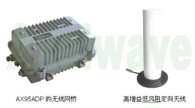 我们选用美国AXELWAVE的54M无线网桥AX9500系列中,型号为AX95ADP的无线网桥,其特别的功能为网桥的自动识别组网功能。当若干台AX95ADP无线网桥分别放置在相互的天馈系统覆盖范围之内时,具有相同SSID设置的无线网桥将自动判别并认证对端的无线设备,符合组网条件的无线网桥将自动连接成点对点或者点对多点的网络,而不必事先将对方设备的参数设置到本机。这样,完全可以满足列车车厢任意重新编组后,系统无需人工干预而自动重新建立的功能要求。