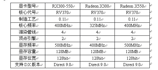 在中低端PCIE显卡市场,Radeon X550是ATi继Radeon X300/X600系列后新推出的高性价比产品。但是,根据ATi的官方资料,Radeon X550与Radeon X300同样基于RV370图形核心,核心频率较Radeon X300的325MHz提升了75MHz,需搭配频率为500MHz的显存。所以实际上,Radeon X550仍是Radeon X300,只不过是“超频版本”Radeon X300。