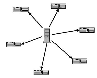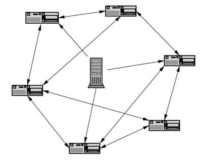 在传统下载方式中,一般是把文件由服务器端传送到客户端,例如FTP,HTTP,PUB等等,工作原理如图1。由于是从一台服务器下载,服务器所提供的带宽是一定的,因而下载人越多速度越慢。但是这样就出现了一个问题,随着用户的增多,对带宽的要求也随之增多,用户过多就会造成瓶颈,而且搞不好还会把服务器挂掉,所以很多的服务器会都有用户人数的限制,下载速度的限制,这样就给用户造成了诸多的不便。