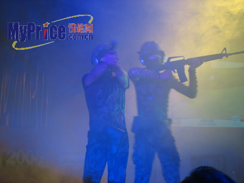 之后是举办方精心安排的Cosplay表演,与本次WGT的四项赛事:反恐精英、魔兽争霸III之冰峰王座、极品飞车及FIFA2006相对应,反恐士兵、魔兽法师、香车美女、足球小子们粉墨登场,为在场的嘉宾呈现了一场酷酷的视觉秀。