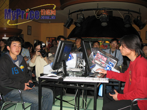 之后上演了一台好戏,而主角就是中国电子竞技界的两位精英:2005 Intel电子竞技大师杯冠军孙昊,与2005 WCG中国赛区总决赛亚军张鹏。两位FIFA高手联袂为在场的各位嘉宾与媒体奉献了一场竞赛的电子足球赛事,精彩纷呈的表演引来场内的阵阵掌声。比赛果为2:2平分秋色,虽然未分出胜负,然而亲临现场体会如此激烈的比赛着实让小编激动不已了。
