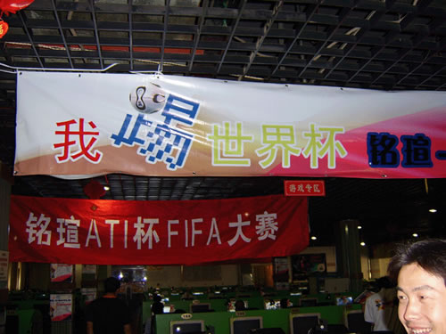 继广州、成都赛区相继开赛之后,本次活动受到了众多FIFA爱好者的关注。经过各路高手的奋力厮杀,本次铭瑄ATI杯FIFA世界杯大赛预赛的战火于6月10日烧到北京赛区。一周的鏖战过后,本周末即6月10至11日,最后的8名出线选手将在上海和北京两个赛区相继产生。 6月10日,北京翔天畅海上网服务中心热闹非凡,整个网吧座无虚席,铭瑄ATI杯FIFA世界杯大赛预赛最后一场比赛在这里拉开帷幕。本次FIFA大赛吸引了众多的FIFA爱好者前来参加,其中不少选手来自遥远的周边省市。