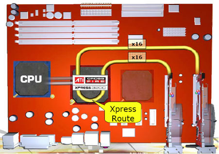 ATI Dual X16是ATI第一款在同一芯片组上支持双X16的芯片,nVIDIA则要用两块芯片才能够完成。nVIDIA想在今年就完成向一块芯片的转变,并承诺,使用一块芯片将会把其价格降下来,最终有利于用户。