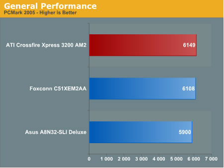 AM2使用Corsair PC-8500 (DDR2-1066) 2GB t 3-3-3-13 2.2V的DDR,而 DDR测试使用的是 Crucial 2GB DDR400 2-2-2-7 配置。为了使测试升级,我们以后也会更多地使用2GB的DDR或DDR2内存。