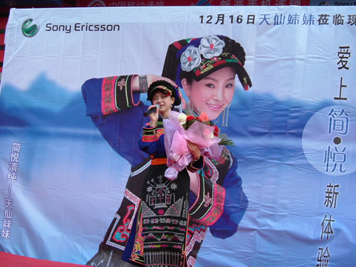 作为索尼爱立信入门级产品“简•悦”系列手机代言人,天仙妹妹以其简单、自然,朴素,清新、美丽的形象很好地诠释了“简•悦”系列手机——J100c、J220c、J230c的特点:简单而不简陋、时尚而不复杂、实用而且易用。