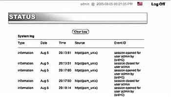在“状态”(Status)菜单下,显示的是当前连接到mini上的客户端的数量,在这还有一个“系统记录”(System Log)的按钮,它显示的是来自mini的非常详细的记录信息(图4所示)。系统记录中所记载的信息对许多的管理员来说有很大的帮助,但对我个人为讲,我更多的是用它来了解其内部的工作状态,这将会在后面的内容中再加以说明。在启动这个设备几次后,这个记录文件的体积看上去变得相当大了,结果就是导致在Web页中加载的时间比较长,如果你平常只是使用这些记录作一些比较基本的用途,那最好是使用“清除记录”(clear log)按钮来使用它的体积保持在一个比较容易处理的大小。