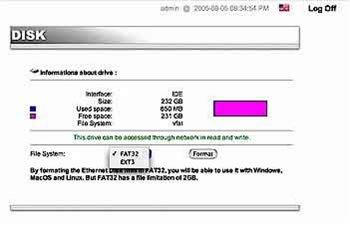 为了突破FAT32磁盘格式的这一限制,mini允许用户把磁盘重新格式化成Linux ext3的文件系统格式,这样就可支持大文件了,不过随之而来的是减少了其应用上的灵活性。例如,如果你把mini内置的磁盘格式化成了ext3的格式,在Windows和Macintosh下,将不能够把它作为一个外置的USB驱动器来使用了,但在所有的操作系统下它还是可作为一个网络驱动器来访问,丝毫不会影响其性能,仅仅是不能够把mini直接插入到Windows和Macintosh系统下的USB端口中。虽说这不是一个理想的解决方法,但至少给用那些需要支持单个文件超过2 GB的用户提供了一个选择。
