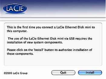 但你是否想在一个单独的设备中同时拥有上述的两个不同优点呢?既可以在100 Mbps局域网方便地使用NAS,如果偶尔有比较繁重的存取需求时就把它直接插入到速度更快、高达480 Mbps的USB 2.0端口中,更好地让它来为你服务。 这样的想法已变成了现实,这就是莱希(LaCie)的Ethernet Disk mini(图1)。它实实在在的是一个NAS,不过可以有双重用途,能兼饰两种不同的角色,当你需要额外的高性能时可作为一个附加的外置驱动器来使用。