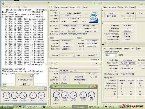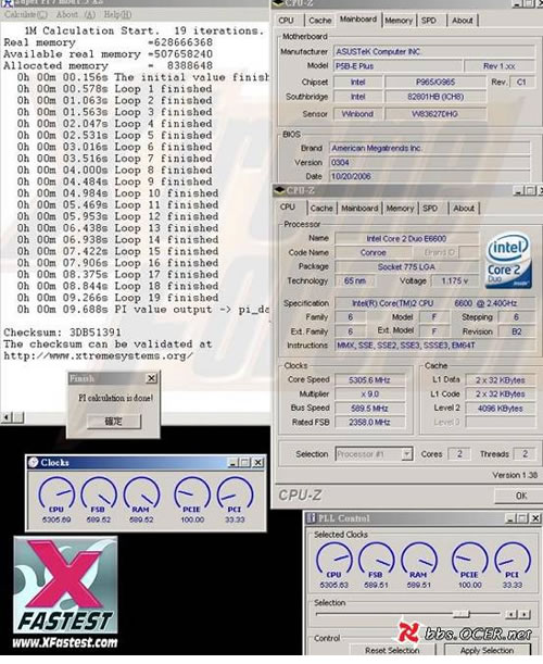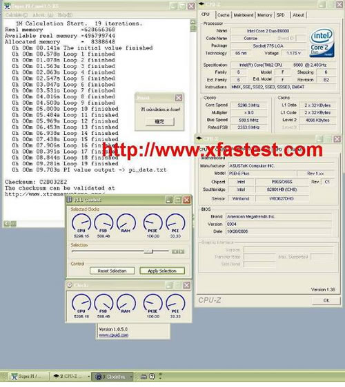 同样是xfastest一员的xfastest-kj在本次大赛中表现出了非常好的比赛精神,抱着学习交流的心态与各位选手切磋超频技艺,并以588.5MHz外频(主频5296.1MHz)1M PI 9.687秒的成绩捧得亚军。xfastest-kj本次使用的华硕P5B-E-PLUS主板,经过了CPU电压、芯片组电压和内存电压的多重改造,可充分挖掘出E6600处理器的超频性能。但如此改造并没有是他成为本次华硕玩家国度超频大赛的最强者,下面我们就来一同了解冠军选手的比赛情况。