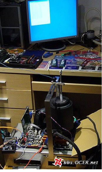 xfastest-TT也是台湾超频战队xfastest的一员,本次比赛中上传了多次成绩,并屡次超越自己以及同战队队友的成绩。最终以588.5MHz外频(主频5296.3MHz)1M PI 9.703秒的成绩杀入前三。在谈及比赛感想时,xfastest-TT说道:“上液态氮,到负130度,要上液态氮真的很辛苦!烧了1张P5B-D,坏了1 个硬盘。”由此我们能看到,久经超频战场的超频高手在操作液氮时都有着不小的风险,要是初涉极限的爱好者更是要加倍小心,以免造成硬件或自身的损伤。
