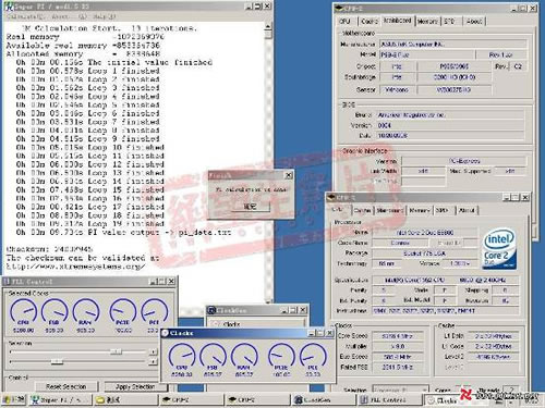 在赛后感言中,xfastest-Hicookie对其使用的华硕P5B-E-PLUS主板赞不绝口“华硕的P5B-E-PLUS在外频的表现能力很强眼,全铝壳的电容,爽度十足。上个月,也曾用这片板子,加上自已的mod,让x6800,也轻易的突破pi 10秒内。真是个不错的好版,印象深刻。”