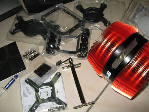 随散热器,华硕还配送了大量的附件,有含银硅脂,适合AMD和Intel各自CPU的背板、支架、螺丝、扣具等等。为了玩家拆装方便,华硕也特意设计了免工具的扣具设计,DIY玩家们只需简易三步骤即可完成安装,不用再移除主板和内存。