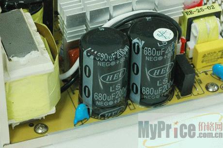 核动力530PQ白金版,额定功率300W电源,是因为采用了两颗高耐压680uF的滤波电容,同时增强+5VSB以及12V输出,12V输出达18A,满足Vista认证显卡跟CPU的高需求。