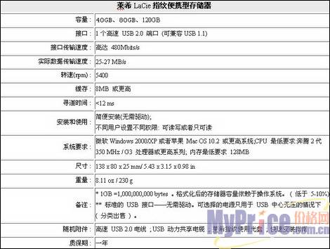 从莱希LaCie指纹存储器的侧面来看,有USB2.0快速接口、电源接口、链接锁端口、开关,这些端口链接指纹存储器和电脑,它的性能是不是达到一流标准呢? 通过技术参数打消您心中的疑惑。