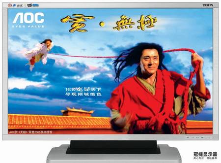 2006年2月,AOC就全力抢进宽屏液晶显示器市场,以和当时贺岁大片《无极》为契合点,开始了“宽无极”宽屏的推广,并提出了率先开启宽屏元年的口号。主打产品——5ms+DVI接口的193FW更是以2399元的价格成为当时市场上性价比最高的19英寸宽屏液晶显示器,并取得当月19寸宽屏中的市场销售冠军。