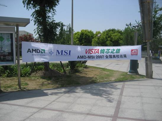让科技走进校园,让技术服务学子。初春时节,由业界著名IT巨头公司——AMD、微星联手举办的“AMD-MSI VISTA绚芯之旅”如期举行。本次巡展将为您介绍当前市场热销ATI全线显示卡,微星全系列板卡系列产品以及相关PC周边配件等。同时,2007年最热门IT资讯将在此得到完美诠释,微软公司历时五年精心研发的VISTA系统热潮就要来了,你已经准备好了吗?再次率先打破业界常规的AMD真四核心处理器的平台架构是怎样呢?ATI次世代R600系列显示芯片的重大技术革新都有哪些呢?继全球首款支持HDMI/HDCP的RS690芯片组发布后,AMD下一代主板芯片组产品是什么呢?领略更多前所未闻硬件知识,科技影响生活将在这里得到完美体现!此次校园行来到了上海第二站——华东师范大学。