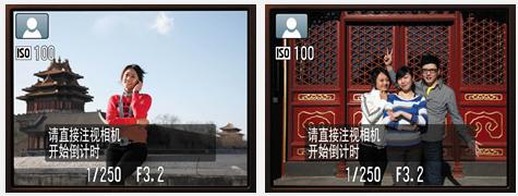 准备自拍时在相机设置中选择“面部优先自拍”功能。按下MENU键,可以设置面部优先自拍的拍摄数量,最多可设置10张。在进入自拍状态后,当画面中人脸的数量增加,相机会马上进行识别并对焦,2秒后释放快门;如30秒内未检测到人脸数量增加,相机会在30秒时自动释放快门。