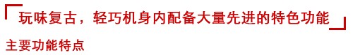 单反相机风格的独特机身造型设计Optio I-10抢眼的独特外观设计很容易使人想到过去的老式单反相机,给用户一种强烈的怀旧感受。通过把闪光灯和扬声器巧妙地安放在机身中部的顶端,同时减小机身两侧的高度使机身中部凸起,宾得创造出了这款源于单反相机外观的产品。相机的前面板中部的纹理采用了优雅高质感的材料,居中的镜头设计,以及顶部的PENTAX标识,都经过认真的设计,从而强化相机复古的造型。
