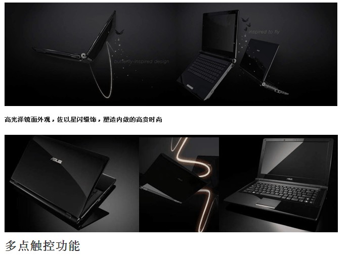 华硕U80具备超轻薄与优雅的外观,一旦将其打开,将重现犹如蝴蝶翅膀一般的美丽曲线,让高科技与大自然美感亲密交融。