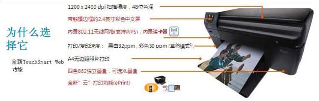 惠普(HP)Photosmart Wireless B110a 彩色照片一体机 (打印 复印 扫描)产品特性: