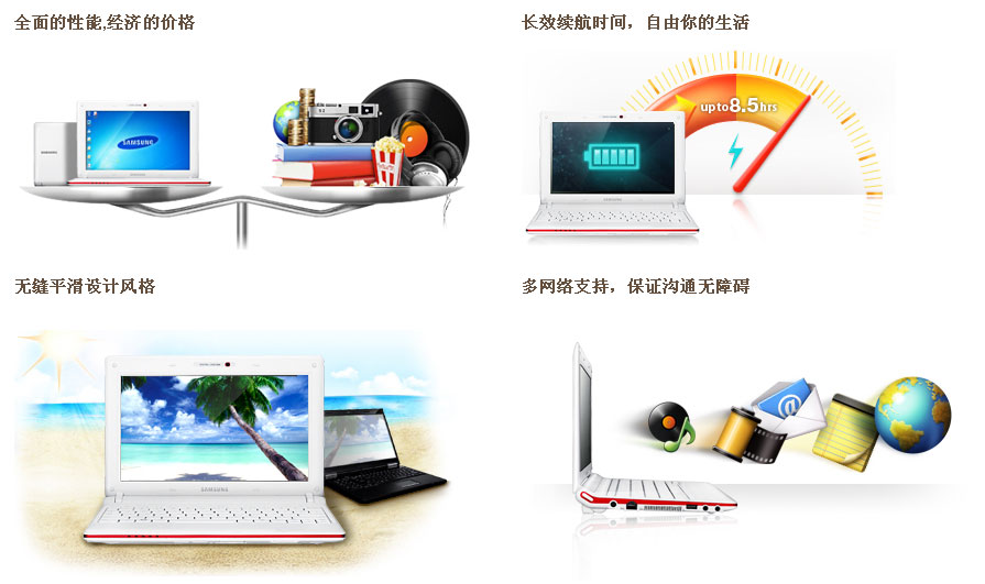 N150拥有您所期待的设计,经济的价格。担心它的可靠性?不用担心,N150的大部分零部件都是三星原厂出品,在三星严格的质量控制下,保证了整机的性能和稳定性。同时大容量的电池保证您在旅途中拥有充足的续航时间更新您的网上博客、浏览网页、同好友沟通。