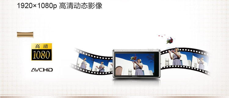 现在就使用dsc-tx100数码相机拍摄高清动态影像吧! 这款相机能呈现1920 x 1080(50p)的高清图像质量。与传统的隔行扫描不同,该相机具有逐行扫描的高清动态影像功能,能够快速捕捉动态的物体,呈现高精度的流畅影像。因为帧速率为50p,可以从动态影像镜头中抓取喜爱的静态图像,并且保持图像精度。此外,相机支持"双重录制"功能,让您在拍摄动态影像的同时捕捉静态图像。
