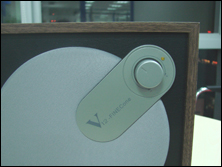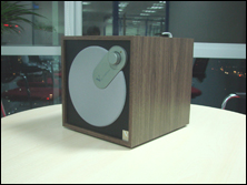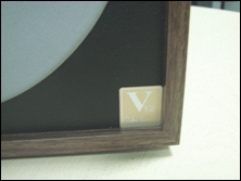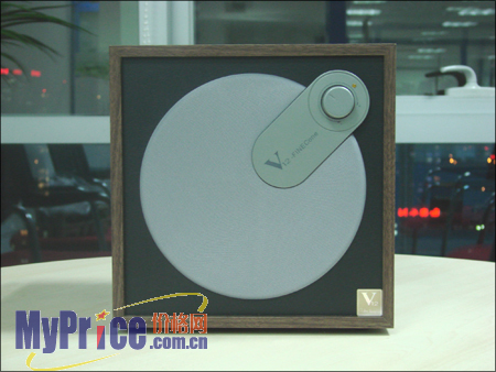 前面板是一个很大的白色防尘罩,右上方是音箱的音量调节旋钮,采用45度角设计,颇具个性,手感也很不错。右下方是一个附有Peter Larsen签名的贴标,标明这款音箱采用的是V12扬声器。
