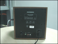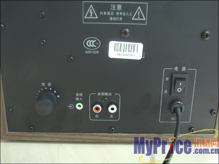 音箱的倒相孔采用侧置设计,电源开关、低音调节以及音箱的接口集中在音箱背部,主要分布在底部,布局合理,一目了然。