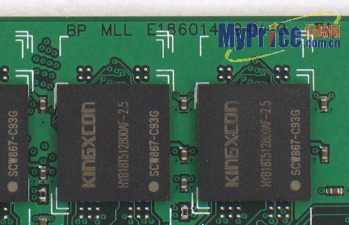 这款金士刚DDR2-800内存选用独特的翠绿色PCB基板,整个产品做工非常精细, 8层PCB板采用大面积覆铜设计,具有良好的电磁屏蔽性能,精心设计的走线排布清晰明了,超短程的布线也为减小信号的延迟以及引线间的信号干扰起到了很好的控制作用,内存正中间设置了存储内存各种信息的SPD芯片和金士刚英文LOGO。