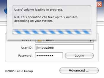 从这一点看来,似乎显得mini正在重新启动以改变到USB模式一样,不过事实好像并不是如此,在笔者的具体使用环境下,在经过仅仅30秒钟左右后,就得到了mini的一个单独共享文件夹,这在它作为NAS模式使用时也是可以看得到的。现在,mini已经作为一个外置的驱动器加载上了,它可如同我机器上其他的驱动器一样来使用。从使用的过程看来,这个登录的对话框与它作为一个网络驱动器使用时倒有几分想像,甚至当其插入到USB端口中也是如此,我还有点怀疑是不是mini虽说是处于USB连接模式下却仍运行在TCP/CP下,不过找不到任何证据表明事实是如此。另外,USB的共享登录并不是标准的Macintosh验证对话框。