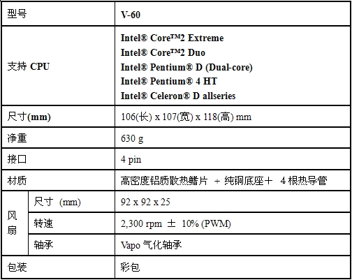 华硕V60散热器技术规格