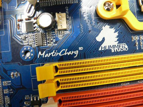 捷波悍马系列主板。由台湾资深主板研发工程师Martin Chang领衔的研发小组设计,主板上同样可以看到其签名的LOGO。
