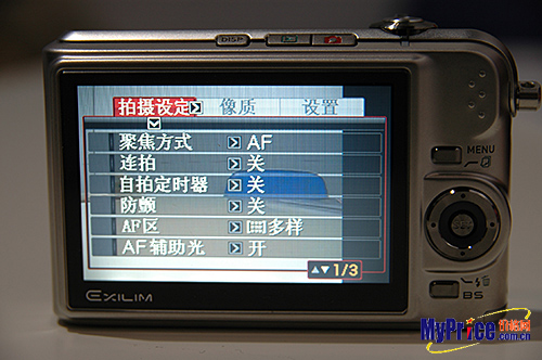 由于这次宽屏在卡西欧Z1000上的使用,整个数码相机的操作系统做了重新的规划,很多提示信息都被做到了界面的右侧,省去了一层层进入的烦琐操作。