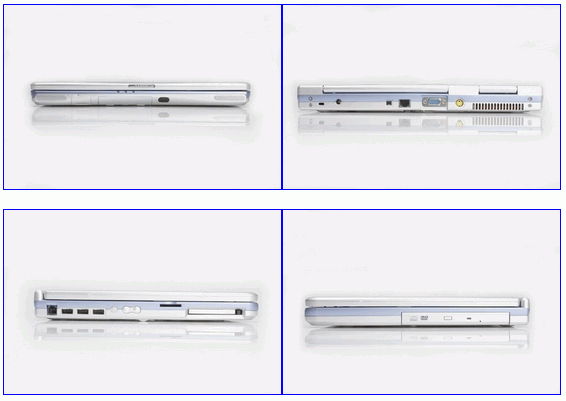 Joybook 5100所提供的接口还算充足,配备USB 2.0×3、三合一读卡器、SD卡插槽、S端子及VGA视频输出、红外线连接、IEEE 1394等接口,完全能满足多媒体娱乐及日常使用的需要。接口的安排上显得有点凌乱,常用的USB接口安排在左侧靠后的位置,而且3个USB接口并排的设计在USB设备较多的时候可能会造成使用上的障碍;另外IEEE 1394接口也被放到机身后侧,使用时可能需要多费点力气。音箱设计正面的两端倒是十分符合使用习惯,另外还为耳机麦克风插口配有塑料翻盖,保持机身的美观。Teac出品的COMBO光驱则安排在机身的右侧。整机只有唯一一个散热口,得益于宽大的机身,即使配备Pentium M 1.5GHz及Mobile Radeon 9000显示芯片也能有充足的设计空间以及良好的散热空间。