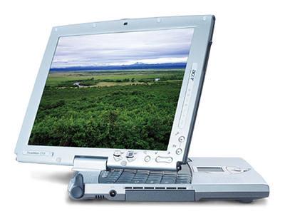 03年4月,宏基推出了全球首款迅驰双用平板电脑TravelMate C110,C111则是其随后推出的升级版本。配置上看,标准的迅驰平台笔记本,C111采用的芯片组是855GM,但无可厚非,这款机器是03年9月份推出的,纯属历史遗留问题。屏幕方面也不是一般的触摸屏,它的手写功能则是通过电磁触控笔和屏幕里面的数字转换器共同实现手写功能,也就是说,你可以不必触碰屏幕即可控制光标。