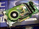 GF 6800GT作为NV40顶级娱乐显卡中的一员,核心频率和显存频率分别定在了350MHz和1GHz。虽然仍旧需要采用单独外接供电接口,但相对较小的发热量却使得其散热风扇设计大为简化。同时,由于拥有16条完整的渲染管线,GF 6800GT的性能并没有下降多少,相比GF 6800标准版仍旧要强悍不少。显存方面采用了最新2.0ns的GDDR3显存颗粒,共计256MB容量,位宽为256bit。