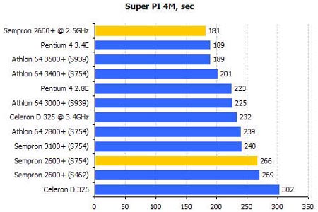 在这四款产品中,最受欢迎的就是Sempron 2600+:价格与Celeron-D 330相差无己,而性能要Celeron-D 330强劲,特别由于L2缓存较低,Sempron 2600+超频性能相当优异。