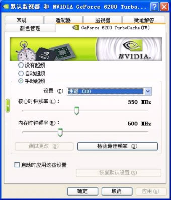 显卡核心/显存频率分别为350MHz/500MHz,除了特有的Turbo Cache技术之外,它还具有GeForce6系列产品所拥有的全部特效,具有3组顶点着色器、4条像素渲染流水线和两组光栅操作处理器。值得一提的是,GeForce 6200TC是目前唯一一款对DirectX9.0 Shader Model3.0提供支持的入门级PCI-E显卡。