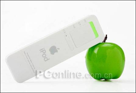 iPod shuffle的外观除传承APPLE一贯的简单洁白且极富艺术气息外,更有一种单纯得近乎青涩的纯洁气质。长条形圆角、有棱有角的边缘、面板上圆形的组合按键,完全继承了iPod的经典风格。特别是推下三段式开关后露出的一抹绿色,看似不经意,其实极富用心,整个外观也因为这抹绿色变得生动、富有深意。