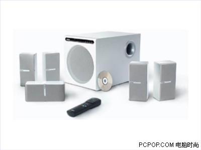 编辑点评:该产品在外观设计上延续了近期推出的价款产品白色典雅的高贵风格。而且整体外观设计在造型和结构上颇有些BOSE的风格,作为AV系统,声音要优于漫步者经典的S5.1。120W的大功率也为该款音箱系统表现完美低音提供了必要条件。