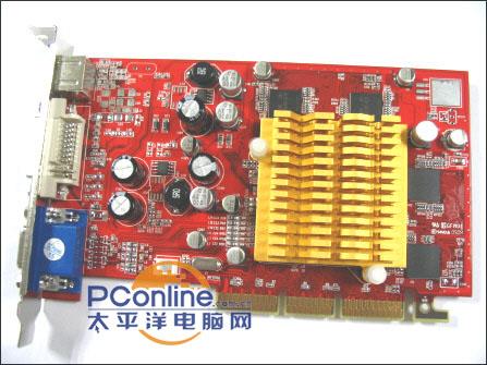 MSI另外这款绿色PCB的9550SE显得特别清爽,刀版设计,目前零售价格仅仅为399元。整张卡看上去较为整洁,比较特别的是只配备一个DVI口输出,使用CRT的朋友要通过随卡附送的DVI转折口才能正常使用。散热方面和上面的Geforce Fx5200恰恰相反,其只使用散热片作为散热方案。不过0.13制程的RV350和核心发热量小得惊人,超频到400Mhz后满载运行也只是稍微感觉到一点热量。RV351在这方面是值得称道的。