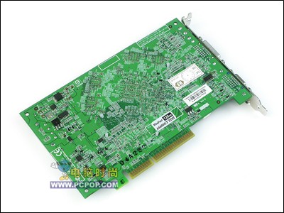 与其它AGP 6600GT相同,丽台WinFast A6600GT的核心、桥接芯片也是采用了旋转45度放置。显卡采用了翠绿色的PCB板,做工依旧延续了丽台老牌显卡大厂严谨的作风。