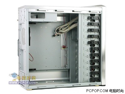 这款机箱型号为STC-T01(又称雷神塔),相信关注过前一段时间德国CEBIT展会的朋友一定会对它记忆犹深,当时酷冷至尊在其前部装满了监控面板,运行起来非常地漂亮,同时强大的扩展性以及散热能力,也在当时获得了众多专业IT人士的一致好评。它硕大的体积(长584mm×宽227mm×高536mm)在机箱中绝对称得上是巨无霸,侧面巨大的散热金属网罩也预示着其非凡的散热性能。