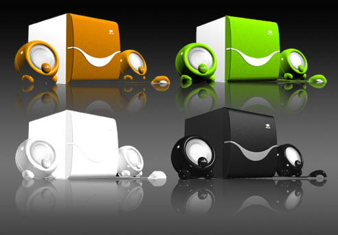 准确的说这款C300Q定位于时尚的MM一族,音箱共有红、绿、橙、白和黑五款颜色,用户可根据自己的喜好随意挑选。主音箱采用纯木质设计,面板上除了轻骑兵的Logo外,只有一个圆弧形的棱角设计,感觉像是在微笑。虽然设计比较简单,但是鲜艳的色彩和外观结合在一起,给人特别亮丽的感觉。