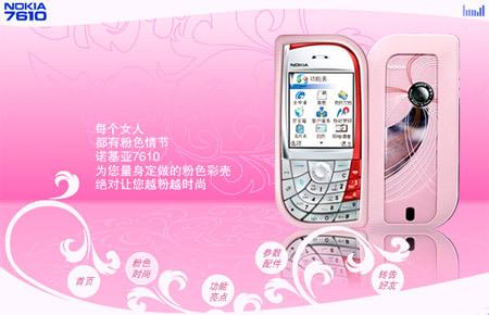 粉红外壳有如贝壳般的触感,独特的线条设计好像海浪的丝丝柔情,非对称的外形让人有不同的解读角度。7610堪称诺基亚经典S60智能手机,大胆而富有突破性的造型设计加上强大的功能,使其具有里程碑式的意义。并且7610也是诺基亚智能手机中较为少有的可换彩壳机型。7610刚上市时很多人都对其独特设计惊叹不已,尽管上市已经有不短的一段时间,但7610在硬件和功能上仍未落后于主流水平,至今仍是受男女朋友欢迎。