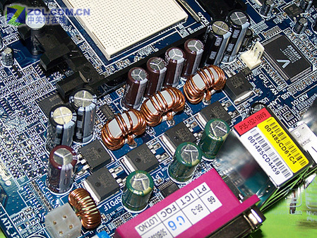 技嘉K8NF-9处理器供电模块采用三相供电回路设计,搭配大量高品质三洋和KZG滤波电容。